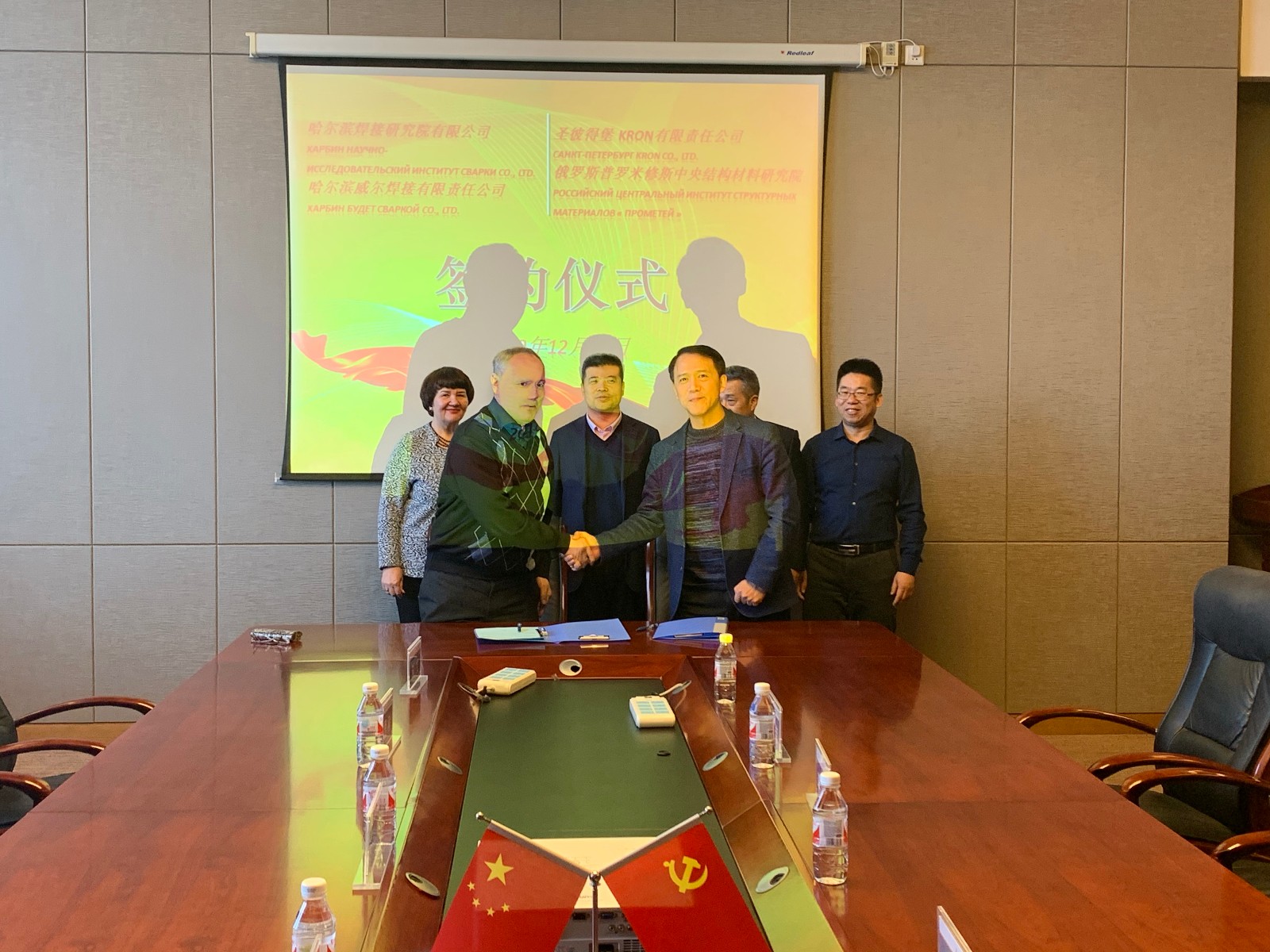 2019年12月19日,哈焊院與俄羅斯圣彼得堡KPON公司的合作簽約儀式在哈焊院舉行。哈焊院總經(jīng)理李連勝、副總經(jīng)理徐鍇、威爾公司總經(jīng)理陳波以及KPON公司總經(jīng)理Bayguzin Evgeniy、俄羅斯普羅米修斯中央結(jié)構(gòu)材料研究院焊接專家Morozovskaya Irina共同出席了簽約儀式。